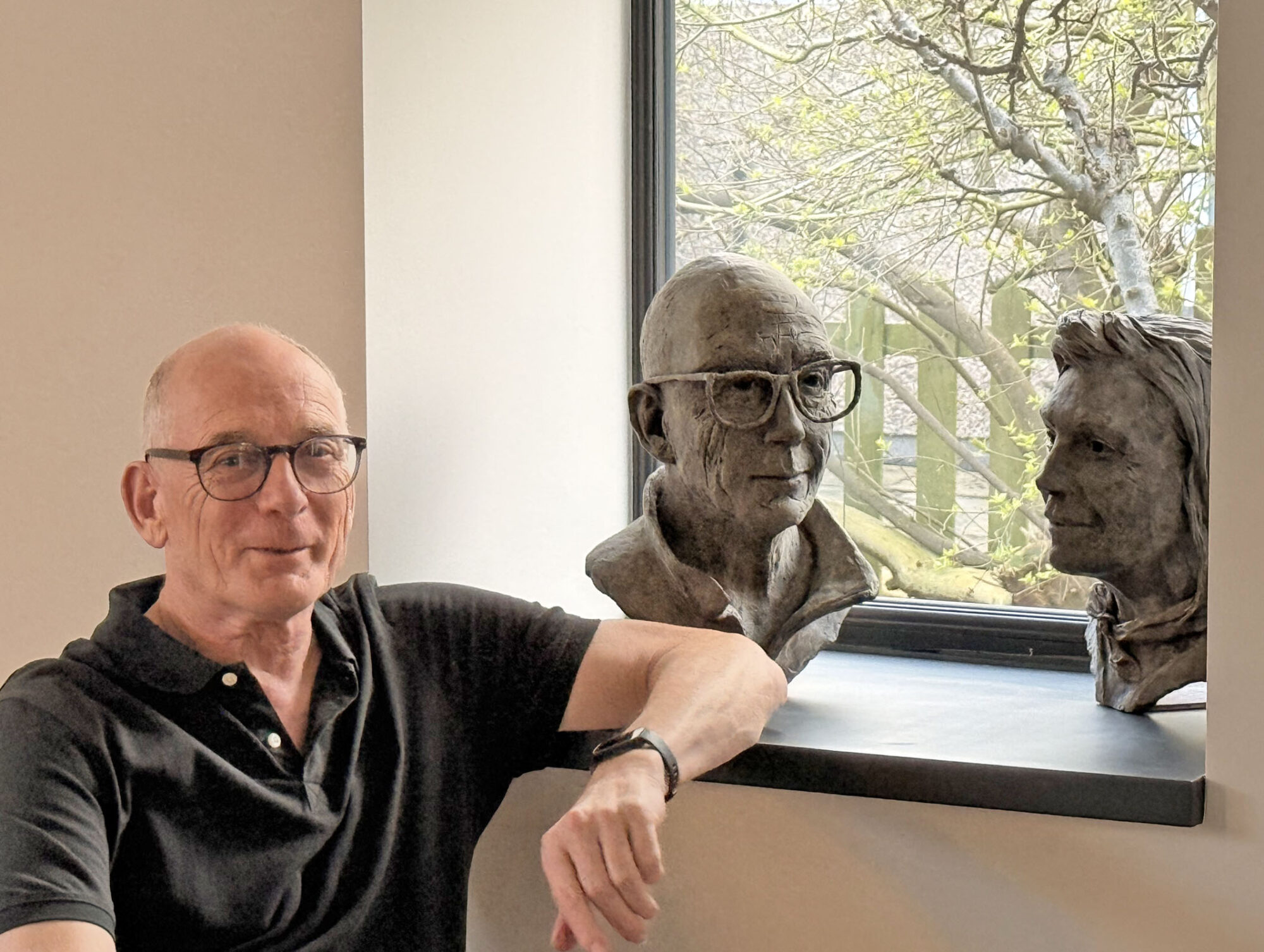 This intimate set of two busts celebrates Paul and Maryam. They sat for the sculpting on a couple of occasions and were keen to have a modern style of finish and patina with these works to fit with their modern home and its colour scheme.